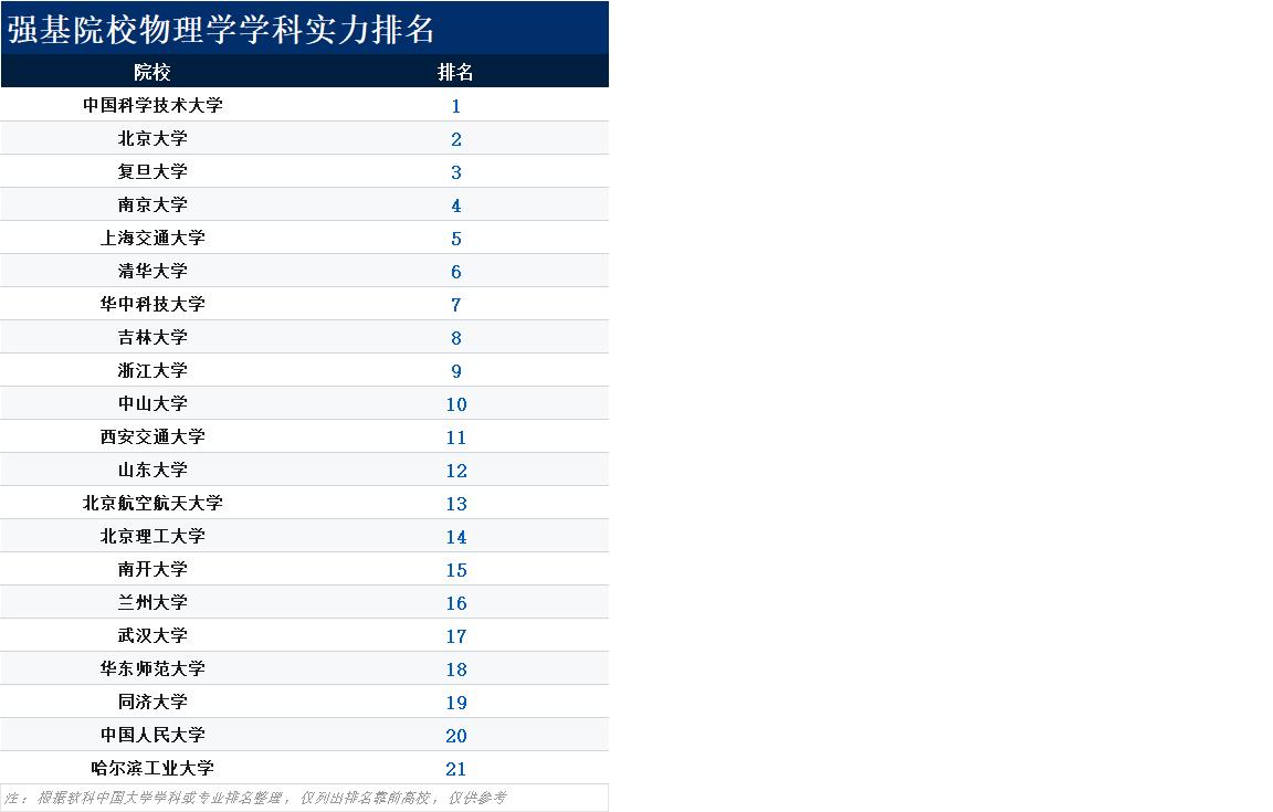0物理学物理学方面,顶尖强校多为清北华五级别的院校。