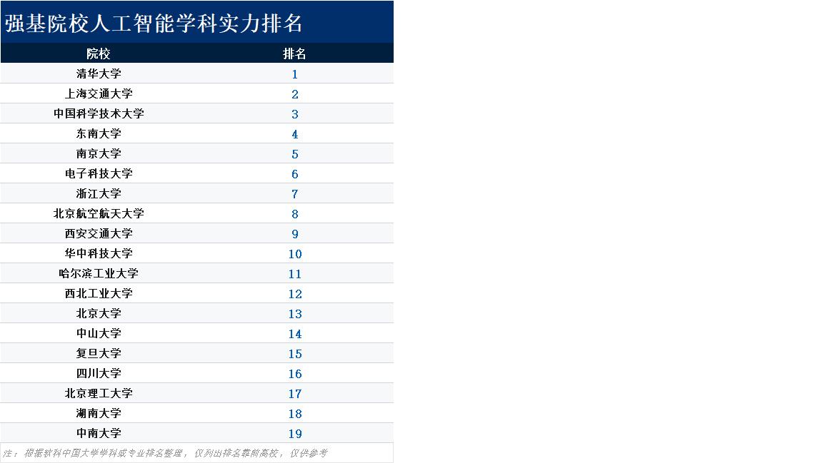 除清北外,中科大、南大、哈工大、西工大、华科、中山大学等高校,在人工智能领域,同样实力不俗,且其强基数学类专业中,有明确的智能科学培养方案。
