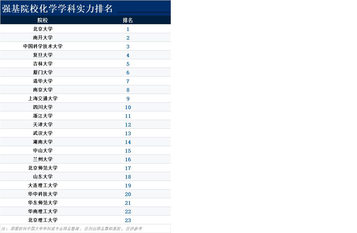 0化学从排名上看,北大、南开、科大、复旦、吉大化学学科实力位居前五。