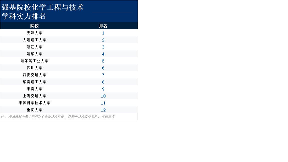 02与化学学科顶尖强校多为综合类院校或理科强校不同,化学工程与技术因其工科性质,这一学科的顶尖强校,多为工科院校。